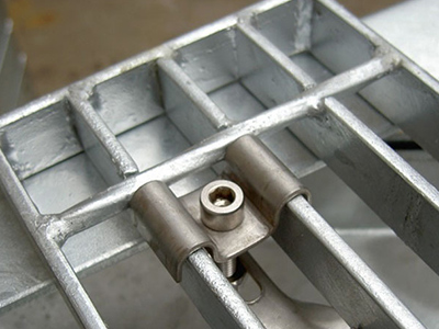 安裝夾根據(jù)需方要求可由生產(chǎn)廠供應(yīng),除不銹鋼材料制造的安裝夾外,碳鋼制作安裝夾必須經(jīng)熱浸鍍鋅表面處理,建議安裝夾用螺栓經(jīng)熱浸鍍鋅表面處理,螺栓直徑不得小于8mm,每件鋼格板使用安裝夾的數(shù)量不得少于4只。對(duì)跨距較大的板塊最好在可利用的支承物上多安裝幾個(gè)。[1]